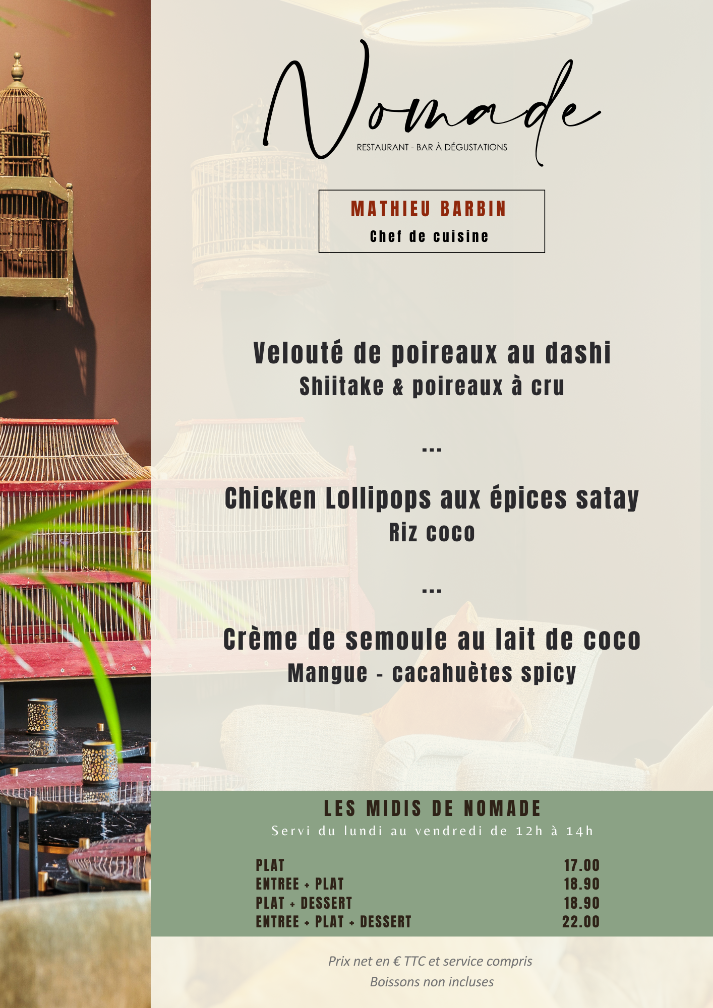ENTREE + PLAT + DESSERT 29.80€